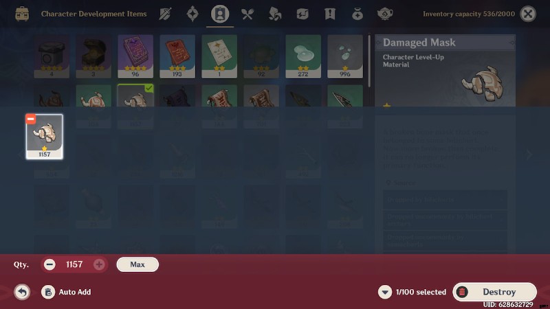 他の領域では、まだロックを解除していない可能性のあるキャラクターを使用できる他の多くのリソースを収集できます。 リユエ キャラクターは地域に固有の多くのリソースを必要とするため、プレーヤーがアイテムを受け取ったときにそのアイテムを使用できないという理由だけで、後で必要になる可能性のあるキャラクターのロックを解除できます.他のアイテムは、武器のアップグレード材料を作成したり、料理の材料として使用したり、パラメトリック トランスに供給したりするのに使用されます。 .