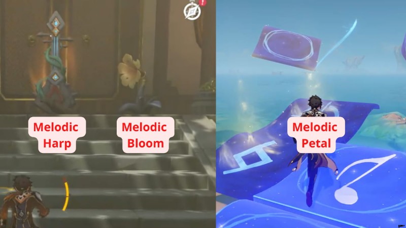 開始する前に、上の画像を参照して、この Mirage のパズルの仕組みを理解してください。メロディック ブルームは、メロディック ハープの力を中継して閉じ込められたメロディーを追い払います。一方、すべての旋律の花びらを一度踏むと、曲を完成させることができます。