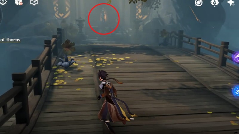 - 上の画像で丸で囲まれたエリアに向かいます。アネモのキャラクターを使ってクローバーの風車を起動できます 山の底で風の流れを呼び起こし、あなたを上に押し上げます。