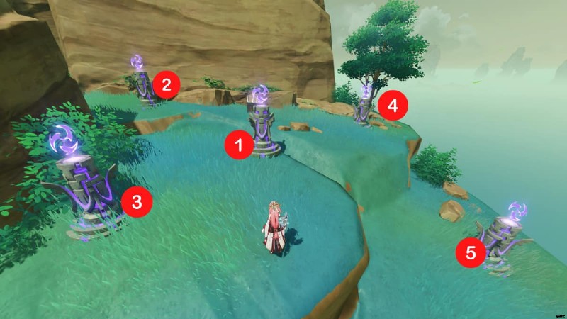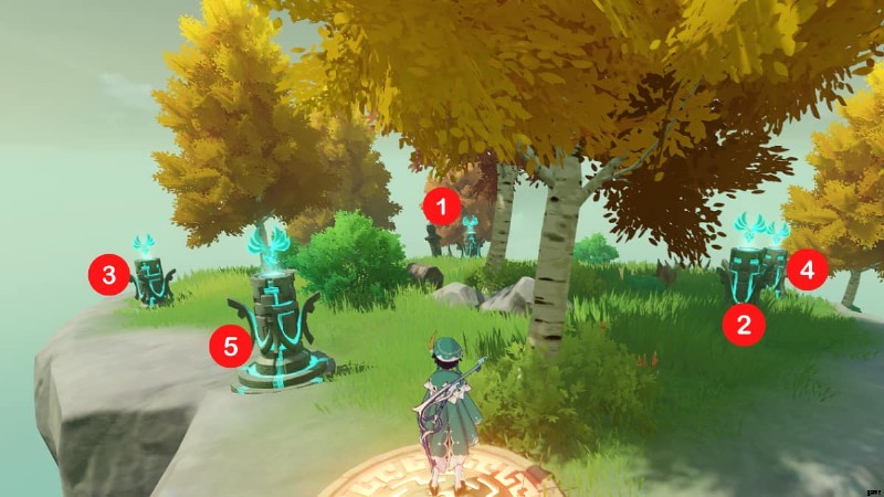 正確な順序でエレクトロ モニュメントをアクティブにするには、リサなどのエレクトロを適用できるキャラクターを使用する必要があります。 上の画像で指定されています。それらを正しい順序で点灯させた後、絶妙なチェスト 現れる。間違えても何度でもやり直せるので安心してください。