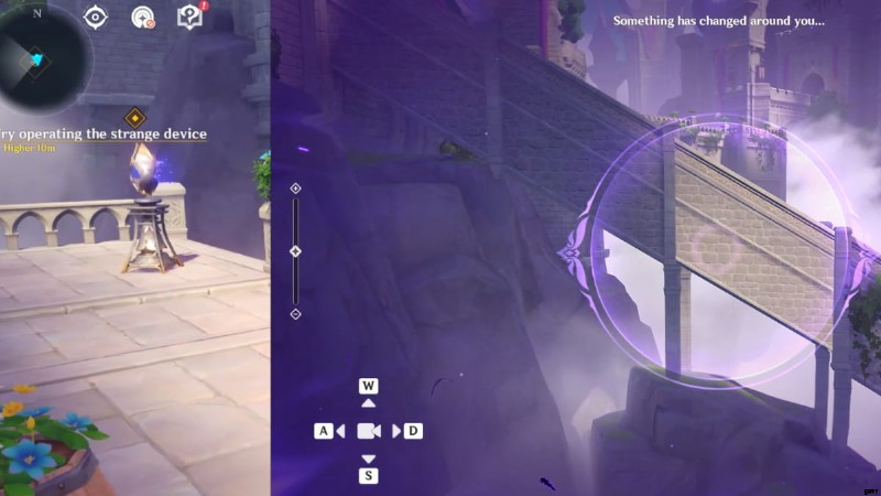 開始する前に、このガイドで使用される 2 つの一般的な用語について上の画像を参照してください。深淵の視線は、ミラージュ全体の主要なパズル メカニックです。一方、エレベーターはフロアの上り下りに使用できます。エレベーターを 2 階または 1 階に置いた場合は、側面にある小さなプラットフォームを踏んで召喚します。