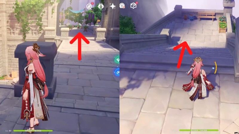 - 交差点で、左側に Hilichurls が見えます。 Ignore them and turn right .