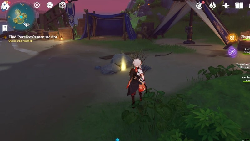 クエスト マーカーに従って、ゴールデン アップル アーキペラゴの北西の島に向かいます。幻覚を起こしているファトゥイのメンバーと会話した後、周辺でペルシコフの手稿を見つける必要があります。ミニマップで強調表示されたエリアの北に向かい、写本を含む光る調査スポットを見つけます。それが完了したら、3 つの島に移動し、パズルを解いて Crystalline Core を入手する必要があります。