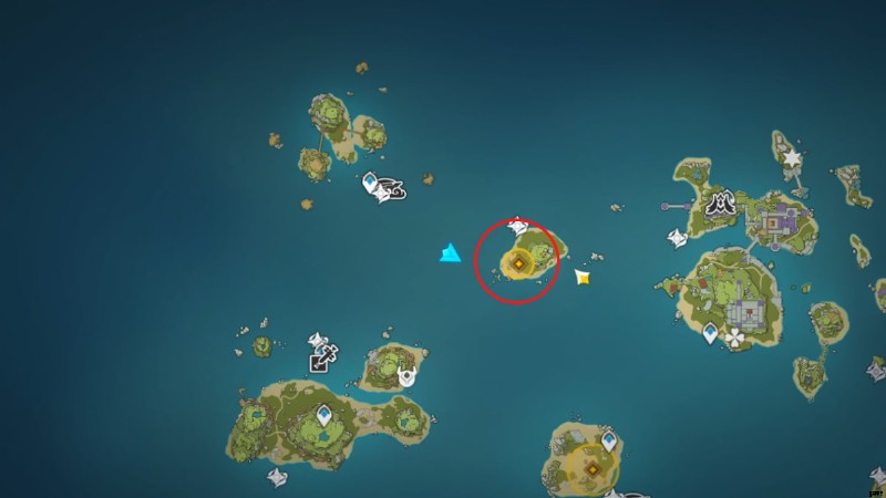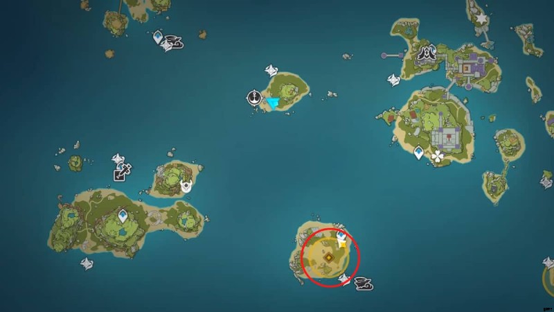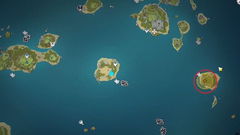 最後の島の場所は、上の画像で丸で囲まれています。前の島からウェイブライダーに乗って向かうことができます。