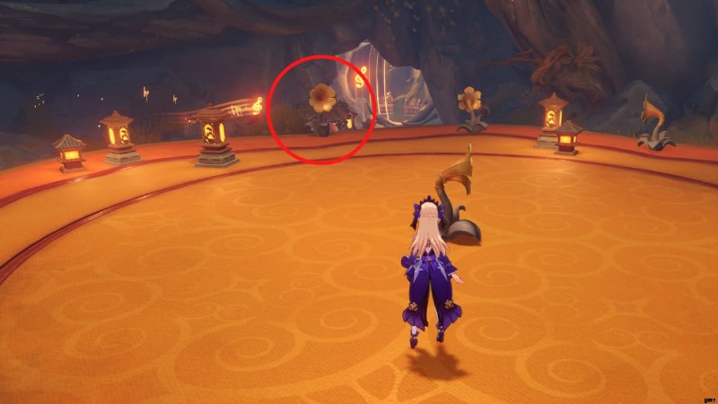 メロディック ハープが後ろにあると仮定して、上の画像の丸で囲まれたメロディック ブルームを1回回転させます。 プラットフォームの中央にあるメロディック ブルームに面するようにします。 遊ぶ メロディックハープ。これにより、コモン ボックスのロックが解除されます 中央にあります(上の写真ではありません)。コモン ボックスを略奪した後、プレイ 再びメロディックハープ。 3 つのプレシャス チェストを塞いでいるバリア 部屋の端にある が分散し、戦利品を受け取ることができます。