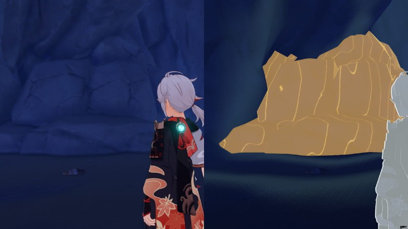 次に、クエストマーカーを使用して、ウェイブライダーを使用してアクセスできるミナシャス島の西にある小島を見つけます。そこに着いたら、山に登り、飛び降りて洞窟に入ります。 エレメンタルサイトを使う 部屋で壊れやすい岩を見つけて、Geo Damageまたはクレイモアを使用して壊します。内部には、Sea Route Log と呼ばれるクエスト アイテムを含む共通の宝箱があります。 .