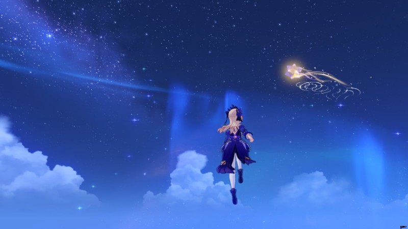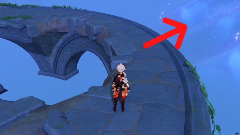 宝箱を略奪して報酬を獲得し、浮遊星を召喚します 、従う必要があります。目に見えない橋が形成され、現在のプラットフォームと廃墟の最上部が接続されます。上に着いたら、動きが止まるまで、別の目に見えない橋を渡って、浮かぶ星をたどり続けます。 タッチ 空のどこかの隠された場所に運ばれます。