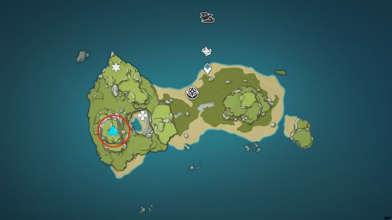 現在のバージョンでは Minacious Isle では、星座の前に 2 つのプレッシャー プレートがあります。このパズルは、The Ancient Azure Stars のクエスト セグメントを完了した後にのみロックが解除されます。その後、Place in Water 機能を使用して、島の過去と現在のバージョンを切り替えることができます。すべての設定が完了したら、下の画像で丸で囲まれたエリアに向かい、パズルを見つけてください。