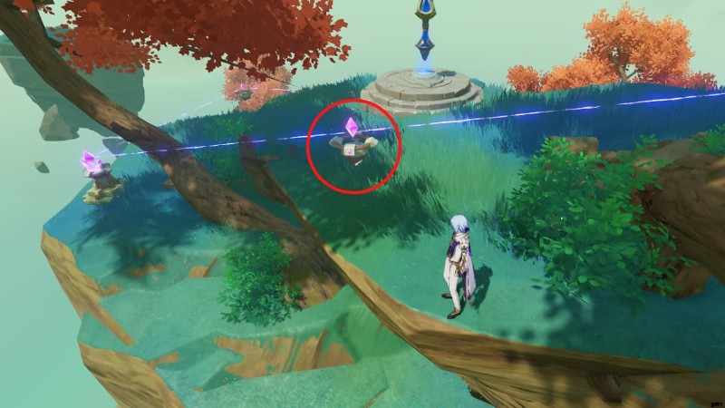 上記の仕様で盆栽を組み替えたらテレポート中継地点へ プリン島にて。その横にあるリレー ストーン パズルをすぐに見つけることができます。リレーストーンの1つはデフォルトで別のメカニズムに接続されていますが、それを拾ってどこにでも移動できます. 2つ目は、左側の紅葉の木の横にある下のプラットフォームにあります。