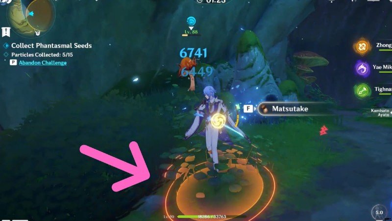チャレンジを完了するのに約 1 分 30 秒かかりますが、ファンタズマル シードを集めると制限時間は補充されます。 . Particles を検索すると、Dream Flowers と呼ばれる紫色の花に遭遇します。 . 電気で攻撃 空に垂直にこぼれる黄色い光が現れるように促し、残りのファンタズマル シードの位置を示します。ただし、黄色のライトは永続的ではありません。アイドル状態が長すぎると、それらは消えてしまいます。再び表示するには、別のドリーム フラワーをアクティブにする必要があります。