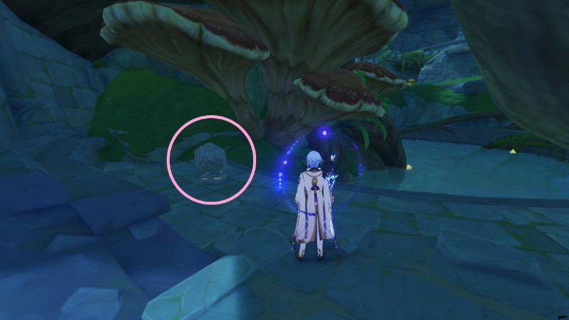 開口部の底まで滑り降りると、活性化されていない廃墟の守護者と中央にある枝の彫像がある空き地が見つかります。近づくとクエストが進行します。