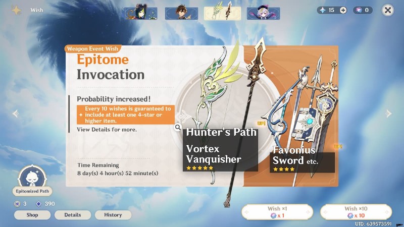 両方の 5 つ星キャラクターをすでに獲得している場合、または特定の武器を希望している場合は、ウェポン バナーが最適です。このバナーは、ハンターズ パスまたはボルテックス ヴァンキッシャーのいずれかを望むことができ、象徴化されたパスを使用して、どの武器を目指しているかを示すことができます。どちらの武器にも長所と短所がありますが、象徴的な道でどの武器を選択する必要がありますか?