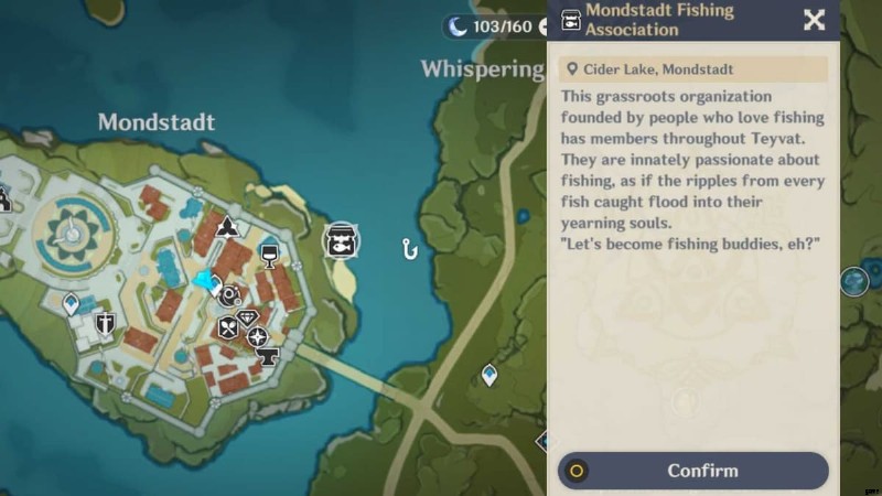 Genshin Impact でモンドシュタット釣り協会と釣り餌のレシピを入手できる場所