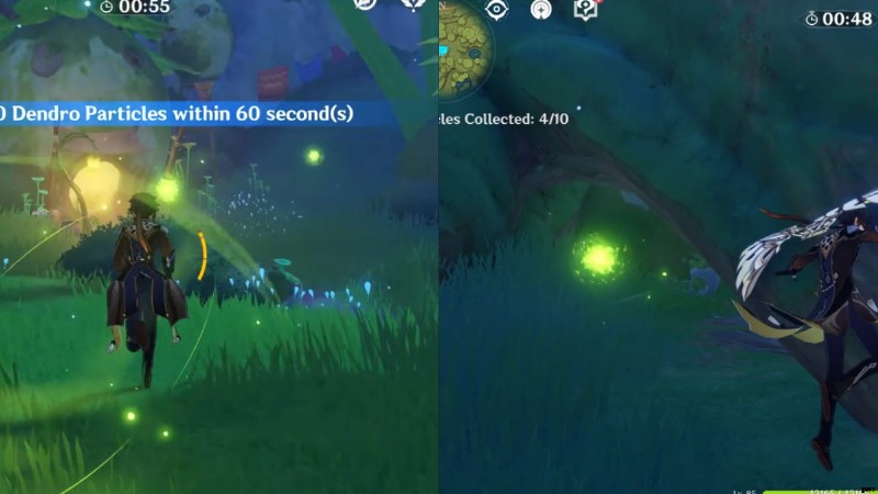 アラカンタと話した後、承知しましたと答えます これは、キャプチャ ゲームを含むタイム トライアル チャレンジです。トラベラーであるあなたはリシュボランド タイガーの役割を果たし、デンドロ パーティクルはアラナーラの役割を果たします。 Dendro Particles の記事を 10 個すべて集める必要があります。 1分以内 チャレンジを完了します。