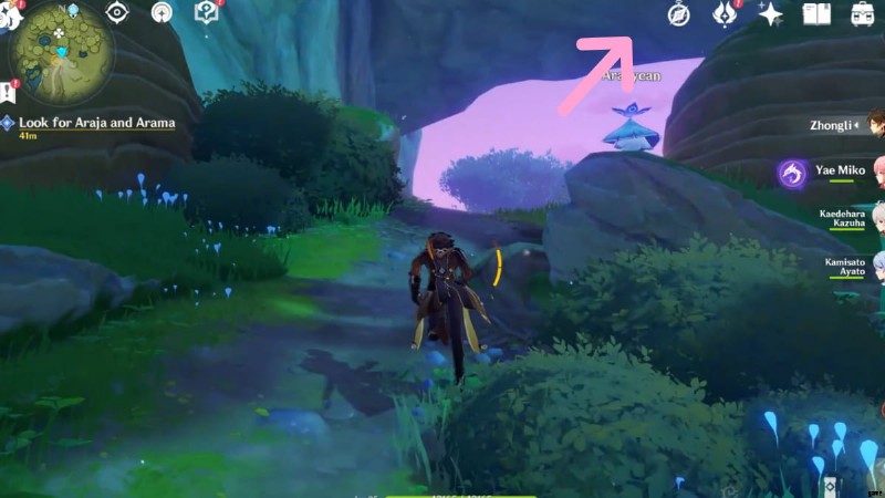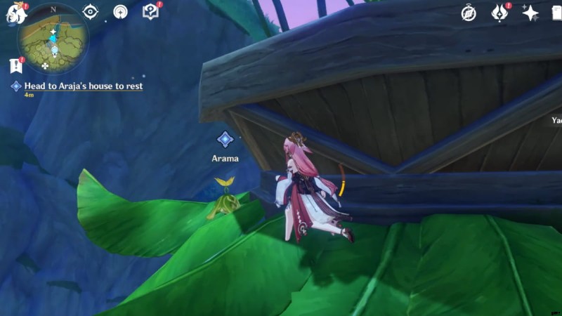 次に、Araja と Arama を検索する必要があります。 Ararycan の横にある大きなマウントに登ると、それらを見つけることができます。 2人が待っている崖の上に登るために登ることができるつるのはしごがあります.彼らと話した後、アラジャの家に向かうように促されます.