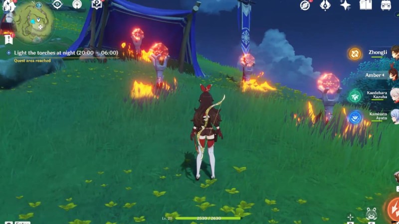 それが完了したら、Pardis Dhyai の北にあるクエスト マーカーをたどり、ゲーム内時間を 翌日の 20:00 から 6:00 の間 に変更します。 .次に、4 つのたいまつに任意の順序で火をつけます。これでクエストの目的が達成されない場合は、ゲーム内時間を 20:00 から翌日の 6:00 に変更してください。