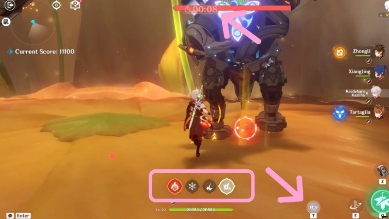 あなたの目標は、敵を倒し、継続的にポイントを獲得することです。 4,000 ポイントが必要です 3 つのラウンドすべてですべての報酬を獲得します。各ラウンドは2分かかります 画面上部のタイマーで追跡できます。 2分後、次のラウンドの敵と再溶解効果に合わせてパーティーのセットアップを更新するように求められます.