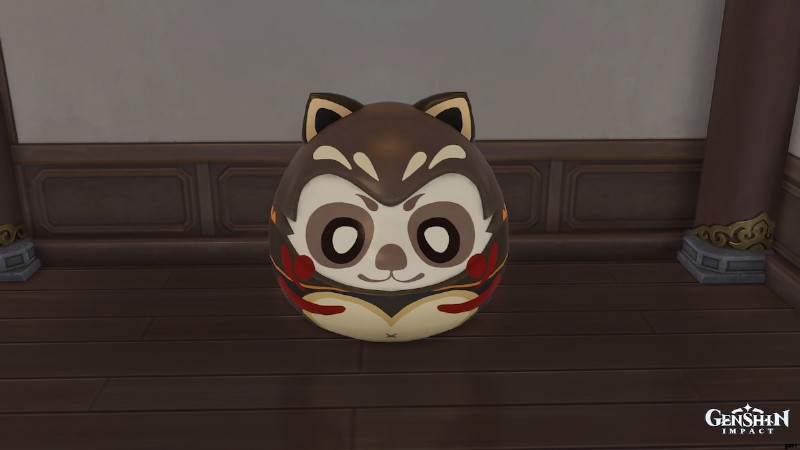 この円形の友達は、有名なタヌキの生き物をテーマにしたヌキヌキだるまです。 Genshin Impact 伝承では、この人形は Yae Publishing House によって販売されており、人気のあるライトノベルの 1 つをテーマにしています。この家具は愛らしいだけでなく、触ると前後に跳ねます。