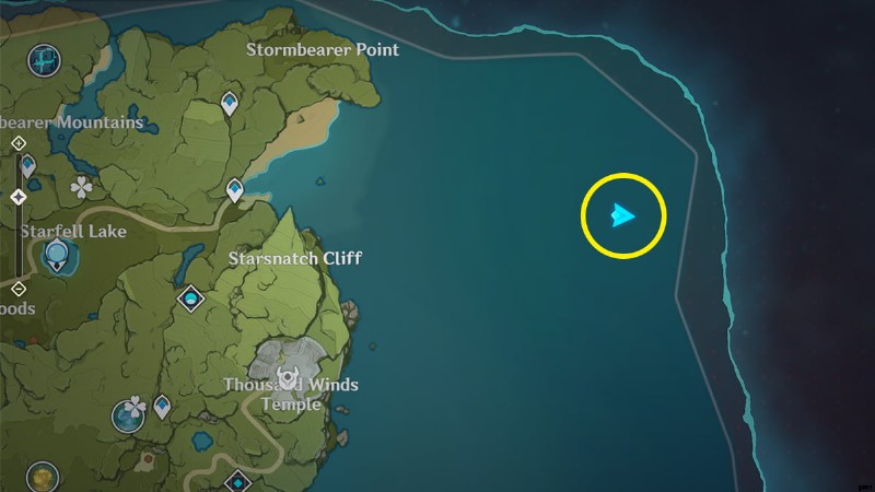 準備が整ったら、スタースナッチ クリフの頂上から飛び降りて、遠くの島に向かって東に滑り始めます。スタミナが危険なほど低下した場合は、スタミナを回復する食べ物を食べてみてください 、山の珍味のヌードルまたは5つの漬け物など。アネモエレメンタル共鳴バフ、あなたのチームの琥珀、デリシャスミンティミートロールのプレート、およびいくつかの緊急スタミナ回復スナックがあれば、名前のない島に滑空できるはずです。ライセンスの実績。