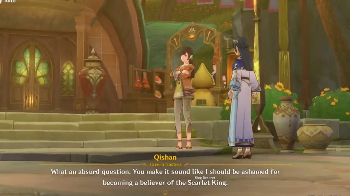 あなたの最後のターゲットはQishanです。セタリアに従って、ナヒダにリユエの酒場のホステスを所有するよう促します。すべてのダイアログ オプションで次の回答を必ず選択してください:
