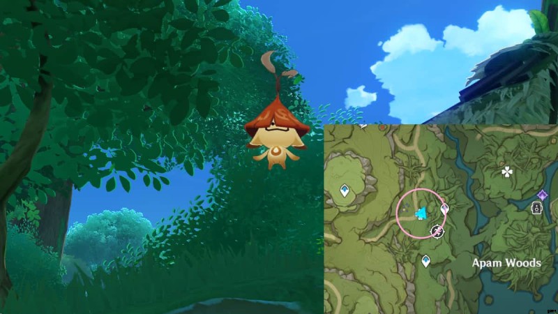アパムの森の西側、上の画像の丸で囲んだエリアに向かいます。 素材を集めるアラナラが見つかります Viparyas 1 つとしわが寄った Starshroom 1 つを求める人。彼にスコーチ スターシュルーム 1 つを与えることができます しわくちゃのバリエーションを表現します。 Viparyas は材料タブに、Scorched Starshroom は材料タブにあります。