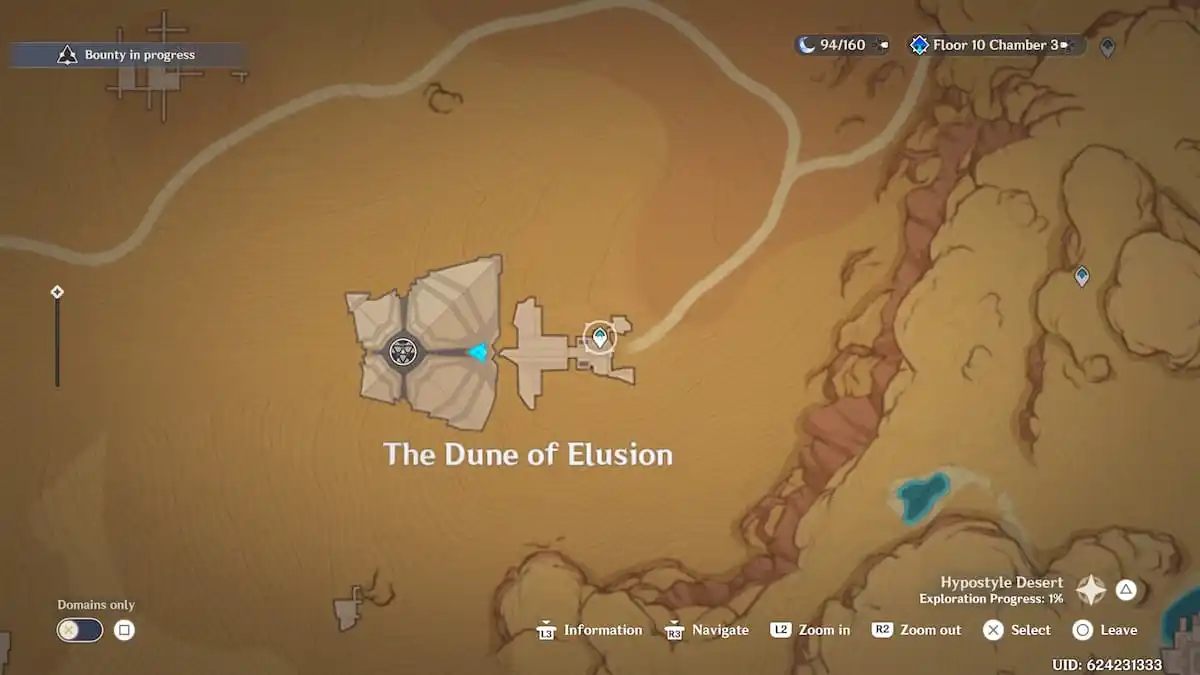 このボス戦のステージを見つけるのは、ありがたいことに簡単です。 Sumeru 砂漠の Dune of Elusion まで徒歩で移動します。ウェイポイントのロックを解除して、次回ここにすばやく戻ることができるようにします。アルゴリズム マトリックスはピラミッドのすぐ内側にあります。