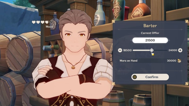 2 回目の代理購入を開始すると、Mountain Mixologist と呼ばれるイベント クエストのロックが解除され、Qingce Village の Guanchui という名前の NPC にリダイレクトされます。彼は、Fruits of the Festival を購入するためにあなたの助けを必要としています。彼と話した後、クエスト マーカーをたどって、Springvale の Georg の店に向かいます。 Georg との交渉中、多かれ少なかれ 21,500 モーラ を提示してください 後で使用するためにいくつかのモーラを保存しながら、取引を確保します。