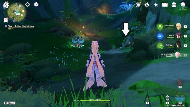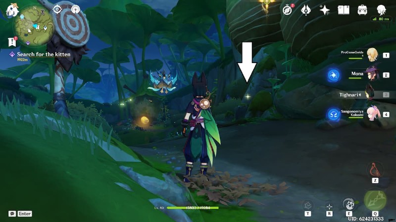 パスはこのプールにつながります。四つ葉の印章を使用して、この岩の上部にあるアーティファクト スポットに到達します。