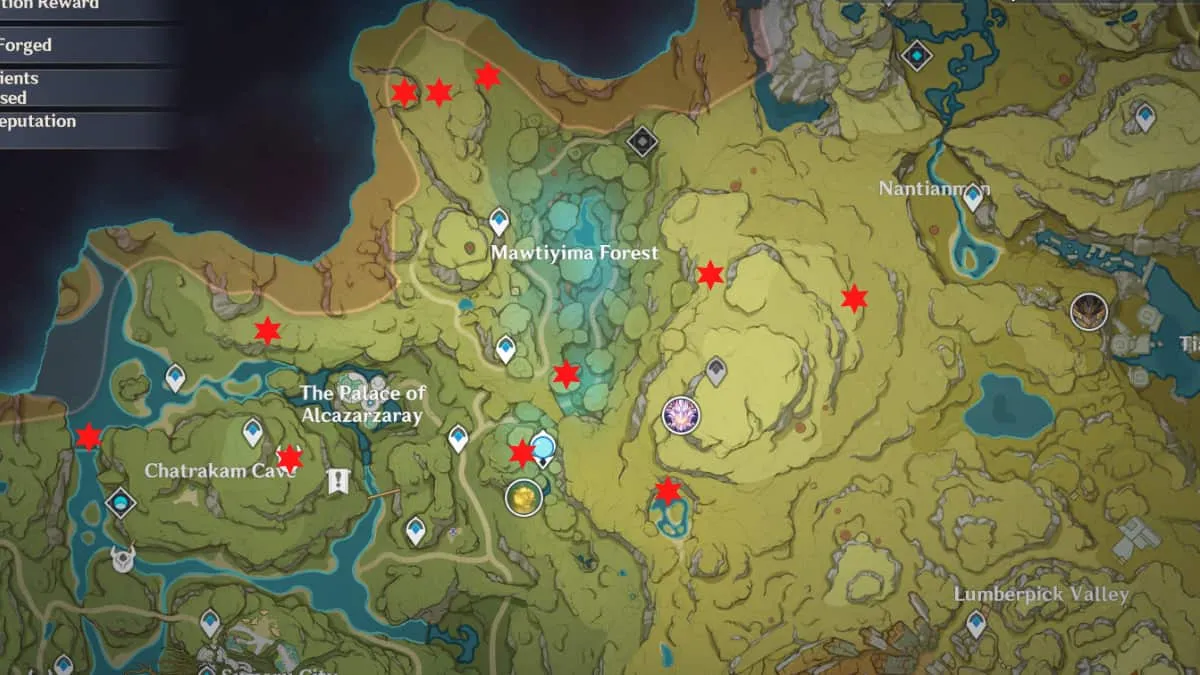 Sumeru's rainforest area is home to 43 time trial challenges, including those with mechanics unique to the region—such as Phantasmal Gate Challenges. Completing 10/20/40 challenges will unlock the Adventurer of the Shimmering Woods Achievement.