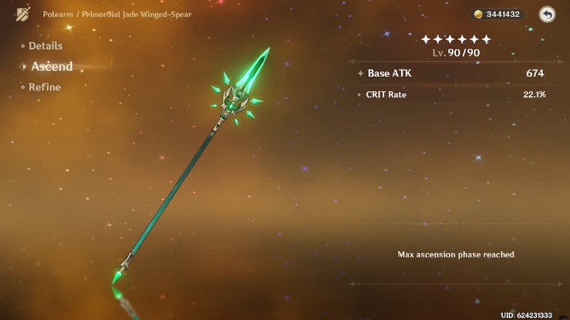 原初の翡翠翼の槍 Xiao にとっては最高のスロット武器であり、DPS ダメージ全般において堅実な武器であり続けます。サブスタットと武器スキルであるイーグル ジャスティス スピアにより、クリティカル率を中程度にブーストします。 、攻撃に大きなブーストを提供します。このボーナスはヒット時に最大 7 回スタックできます。この武器を最大限に活用するために、装備しているキャラクターをフィールド上のメイン DPS として使用することを計画してください。