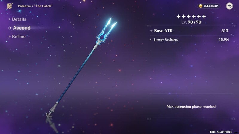 「キャッチ」 現在、Xiangling や Raiden Shogun などの Elemental Burst に依存しているキャラクターにとっては、現在ゲームで最高の 4 つ星のダメージを与えるポールアームです。サブスタットはエネルギー リチャージのみをブーストしますが、その武器スキルであるシャンティ 、増加したエレメンタルバーストの稼働時間を有効に活用します。装備しているキャラクターのエレメンタル バーストのクリティカル率とクリティカル ダメージの両方をブーストします。