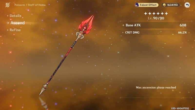 Engulfing Lightning と同様に、この武器は入手が容易ではありません。 武器イベントのウィッシュ バナーに掲載されている場合にのみ利用できます .ホーマの杖はもともとフー・タオのためにデザインされたものなので、フー・タオのキャラクター イベント ウィッシュが再開催されるときに登場する可能性が最も高いでしょう。