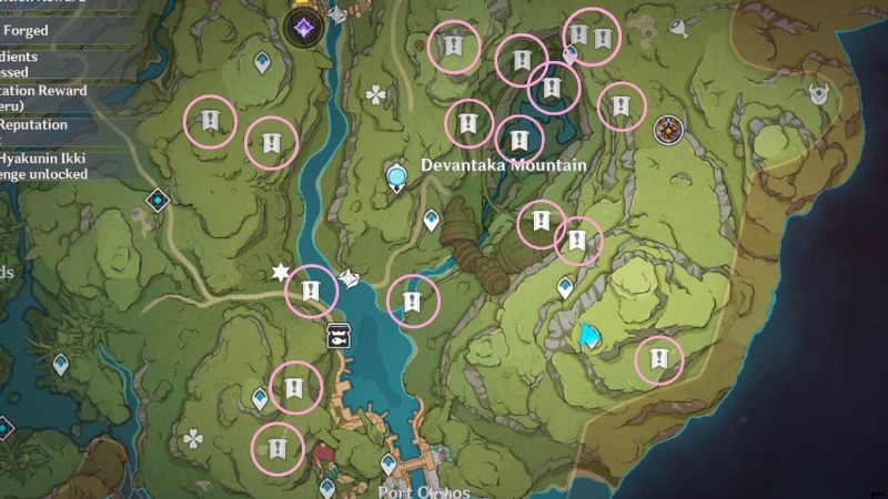 以下は、Sumeru のすべての失われたエネルギー ブロックの場所です。これらは任意の順序で収集できます。全部で 20 個ありますが、秘密の探索目標に使用できるのは 15 個だけです。 Port Ormos の西のエリアに 4 つの Lost Energy Blocks が集まっているため、以下では 17 の場所のみがマークされています。