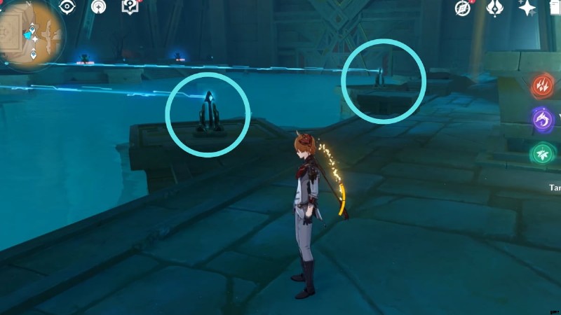 - 2 つの Anemo モニュメント —風の流れを呼び起こします(水を排出する必要があります)。