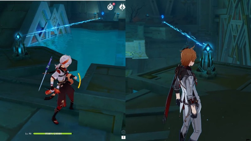 反対側のエレメンタル モニュメントに接続するプライマル ビームを備えた 2 つのデバイスを見つけることができます。これはコントロールとして機能します。両方のセルが同じエレメンタル モニュメントに面している場合、対応するモニュメントのロックが解除され、環境の変化が自動的に促されます: