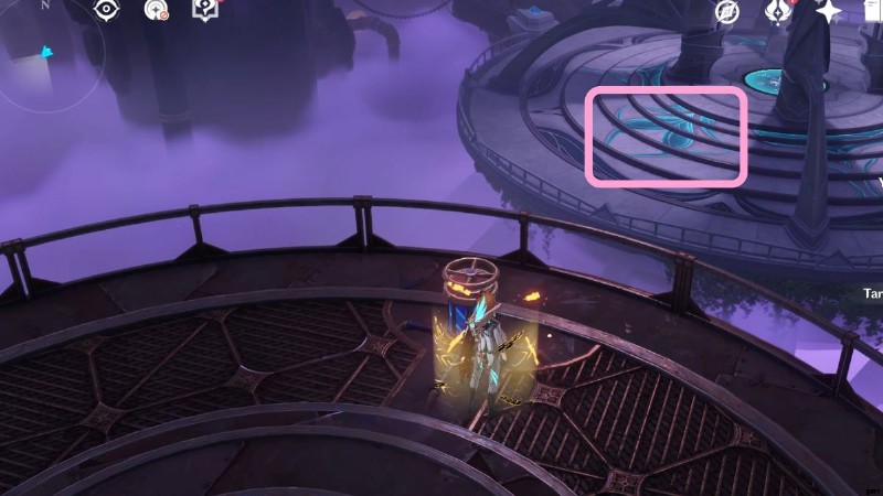 今度は、デバイスを回転する必要があります ギアが正確な方向を向くまで 上の写真。これで西に行けるようになります。 ジャンプ 動いているプラットフォームが近くに来たら、四つ葉のシジルを使ってロックされたチェストに向かいます。ファトゥイのスカーミッシャーを倒して共通宝箱をアンロック そしてそれを略奪します。