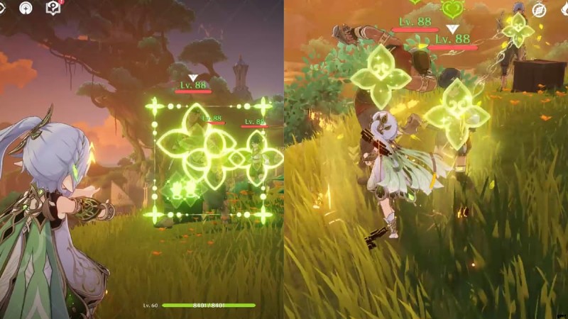 ナヒダのエレメンタル スキルを使用して、テイバット中の素材を収穫できます。 保留 植物や地元の特産品を狙ってリリースするエレメンタル スキル それらを収集するために!これは、Sunsettia のような非地元の特産品を含むすべての植物に当てはまります。オニカブトにも適用されます。