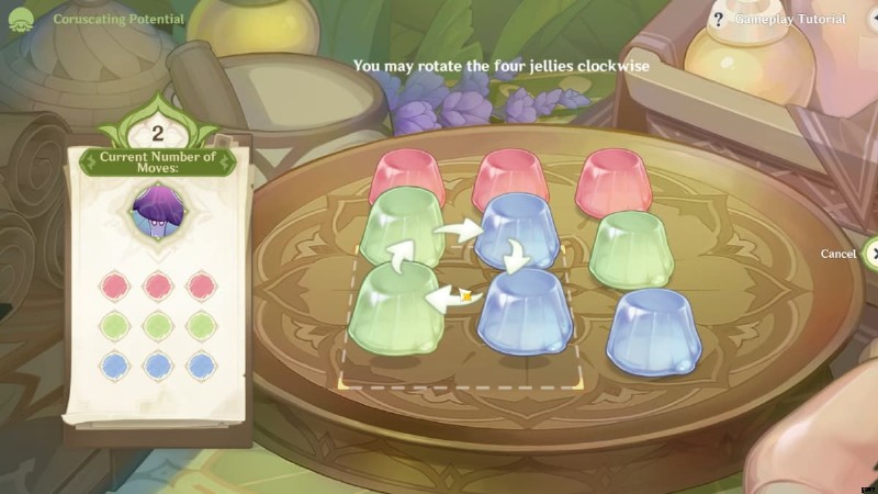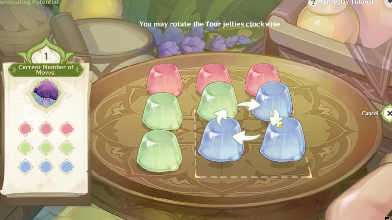 2 番目のステップを正しく行うと、フローラル ゼリーは上記のようになります。次に、左下のゼリーを回転させる必要があります。