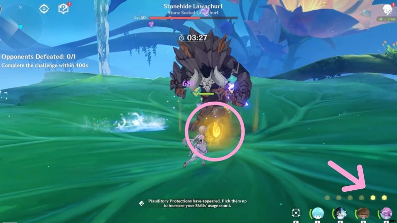 敵をターゲットにするには、クリック アンド ホールドするだけです エレメンタル スキル ボタン、ホバー ターゲットにしたい敵に向かって、放す .各チャレンジには時間制限があります。チャレンジをすばやく完了し、菌類を生かしておくことで、より多くのポイントを獲得できます。すべてのチャレンジ報酬を獲得するには、ステージごとに 2,000 ポイントを獲得する必要があります。