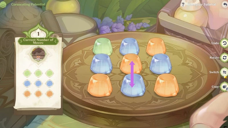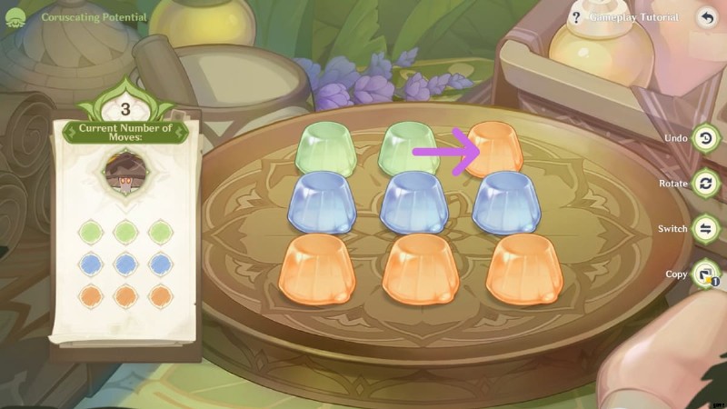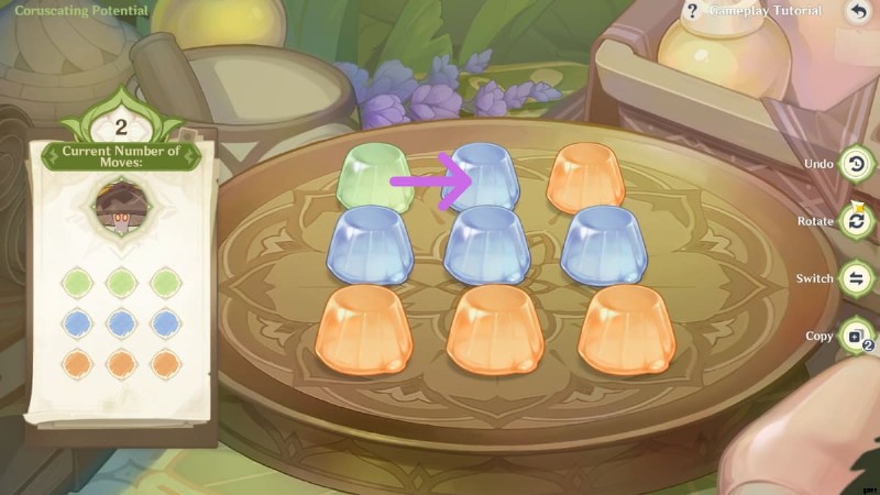 - ステップ 2 :右側の [切り替え] ボタンをクリックします。中央のオレンジ色の Floral Jelly をクリックしてから、中央下部の青い Floral Jelly をクリックして位置を切り替えます。