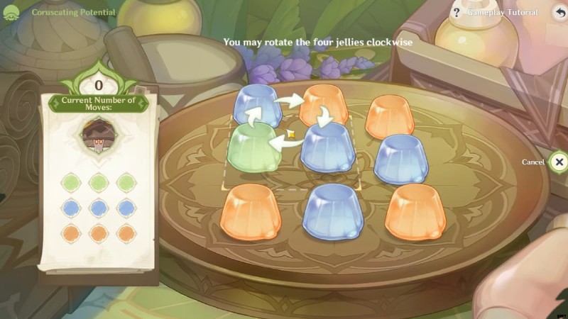 最初に、左上象限にある 4 つのフローラル ゼリーの位置を回転させて変更する必要があります。