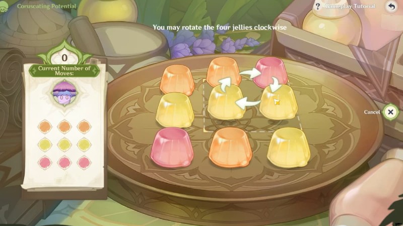 最初に、右上象限にある 4 つのフローラル ゼリーの位置を回転させて変更する必要があります。
