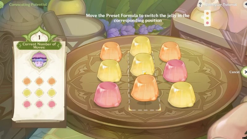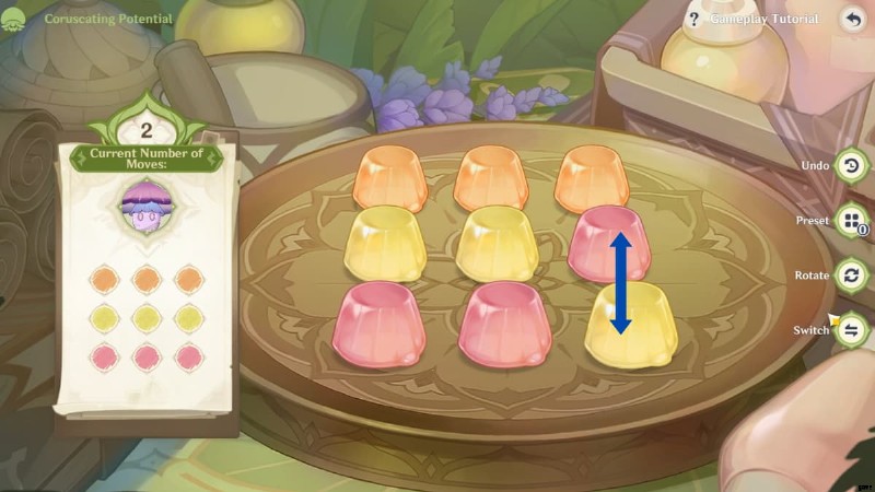 - ステップ 3 :右側の [切り替え] ボタンをクリックします。右中央にあるピンク色のフローラル ゼリーをクリックしてから、右下にある黄色のフローラル ゼリーをクリックして位置を切り替えます。