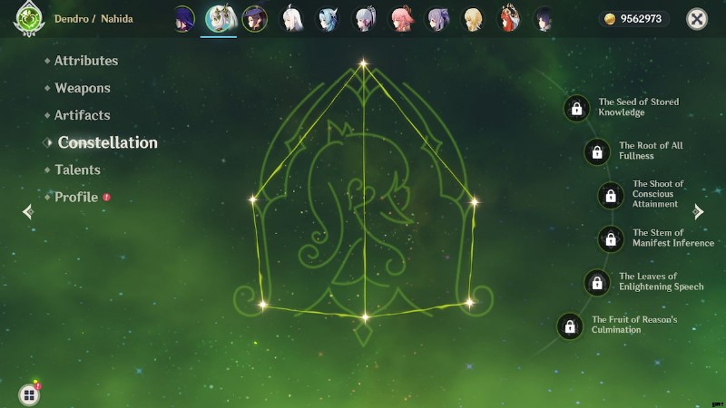 - 意識の達成のシュート - これは Nahida のスキルに対する通常のダメージ ブーストですが、彼女のスキルはそのすべての用途のために彼女のキットの最も重要な側面であるため、この星座も非常に価値があると考えています。