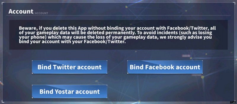 タブが表示されたら、アカウントをリンクできます Twitter や Facebook に投稿するか、Yostar でアカウントを作成してください。