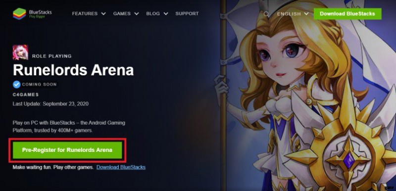 ステップ 2:[Runelords Arena を PC にダウンロード] をクリックします。 ".