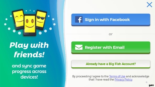 - Big Fish アカウント (お持ちの場合) を通じて