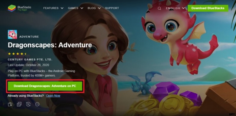 まず、このダウンロード ページに移動し、[Dragonscapes Adventure をダウンロード] をクリックします。 ".単に 😉