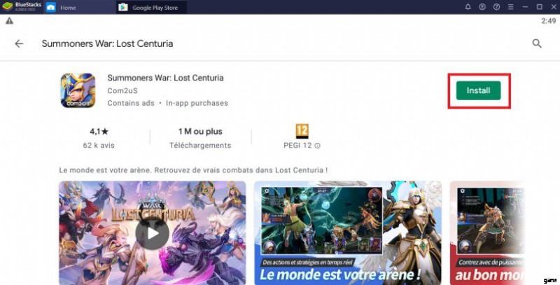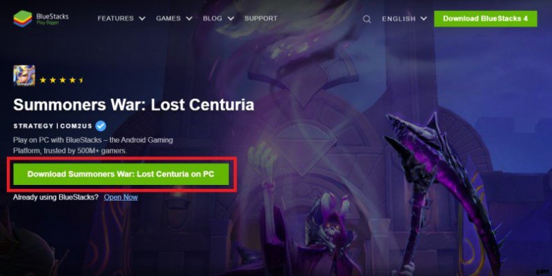 最初のステップは、このダウンロード ページに移動し、[サマナーズ ウォー:ロスト センチュリアを PC にダウンロード] をクリックすることです。 "。とても簡単です 😉