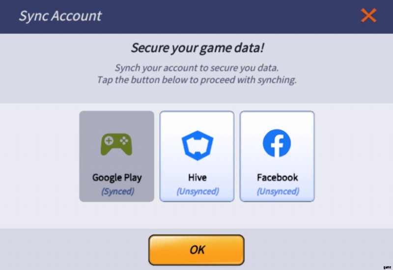 - 次に、2 つの同期オプションのいずれかを選択します:Facebook 、ハイブ または Google Play .
